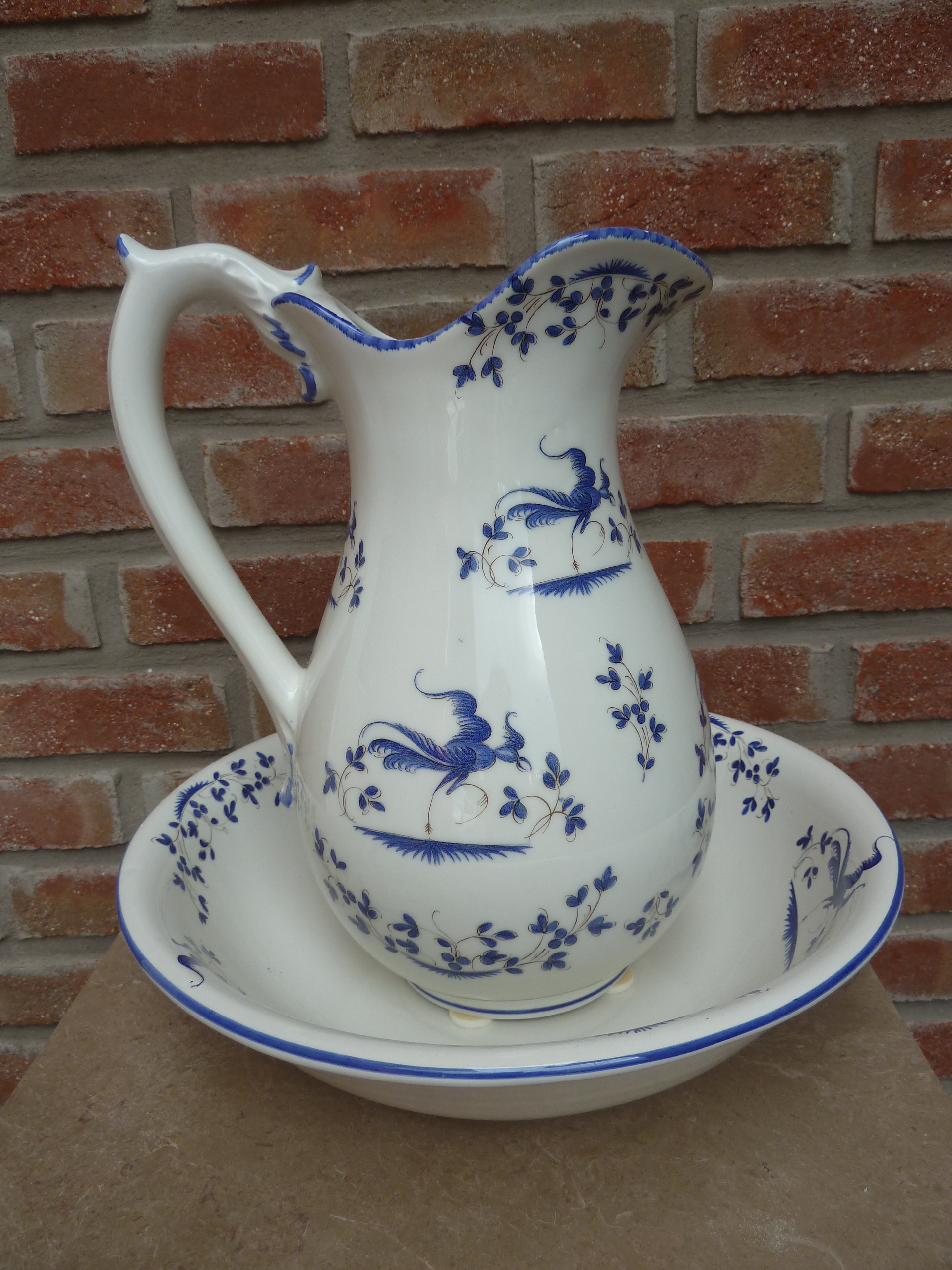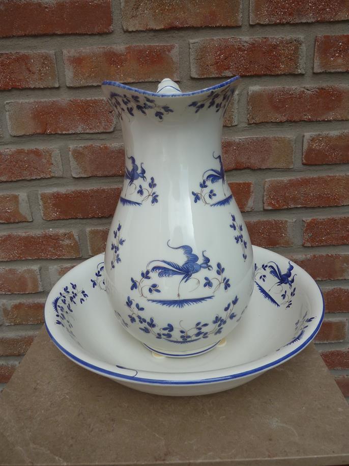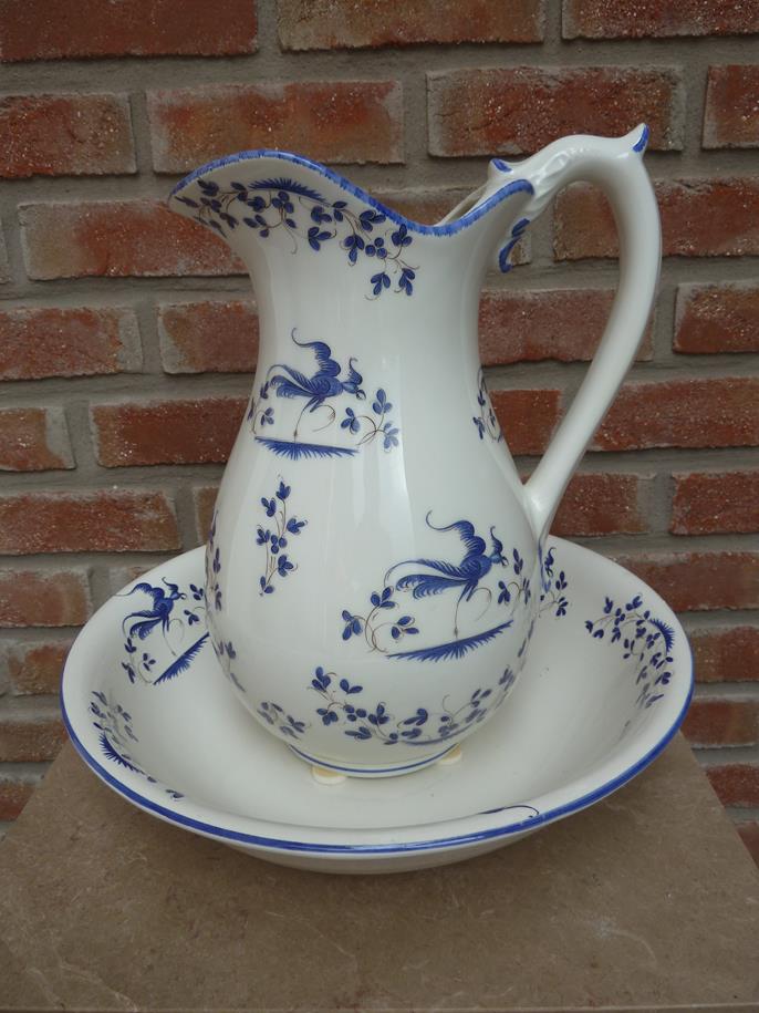 Sehr gut erhaltene Waschschüssel mit Krug. Unikat und handbemalt. Ohne Risse. Vielseitig nutzbar oder einfach nur als schöne Zierde zwecks Verschönerung des Badezimmers.