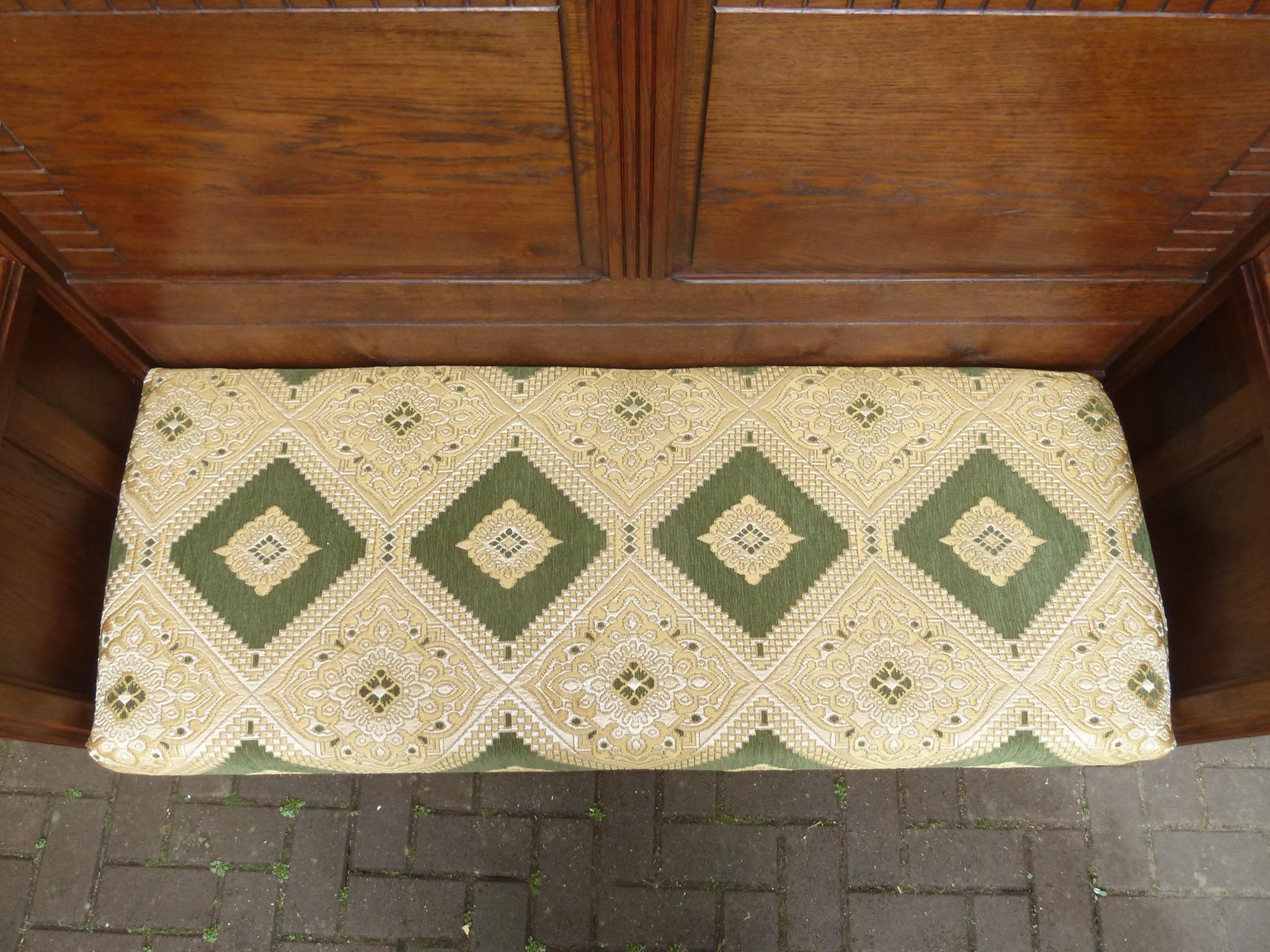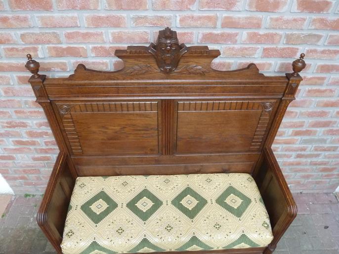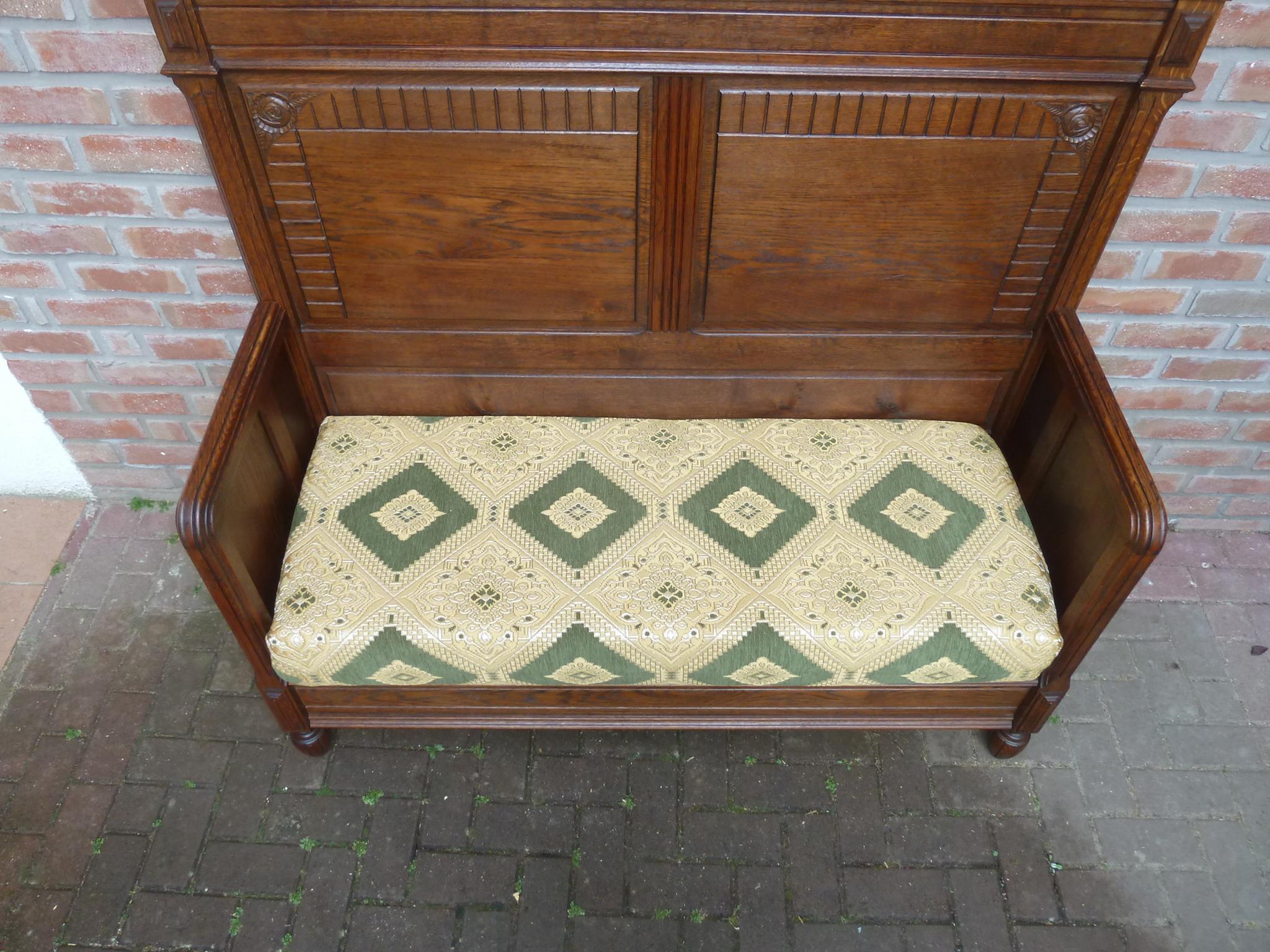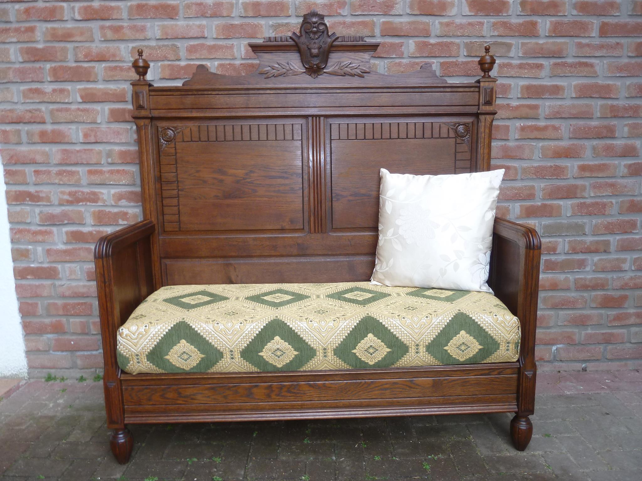 Sehr schöne alte Bank zu verkaufen. Vollholz. Bezug in Gold mit günen Einlagen